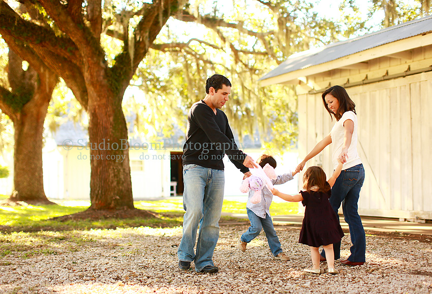Also friends/neighbors of ours that I get to photograph every year. Drew loves to play with their son and the girls love to pamper their little girl. Last year at their session I snapped an action shot that I loved and this year (the last picture on the sneak peek) we got another action shot that I’m loving. The family is playing Ring Around the Rosy…you have to look close but Little Miss P’s stuffed baby is even included.