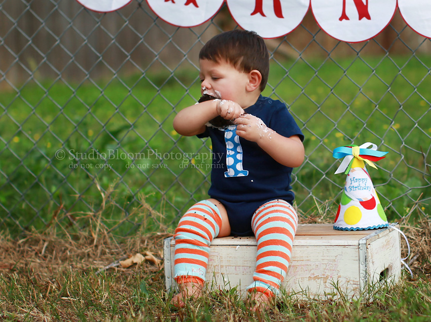 especially when you can just perch your food on your arm and eat it at your leisure:) This little guy is seriously cute and he grew and changed so much since his newborn pictures a year ago. This was his first attempt at digging into a cupcake and he loved it!
