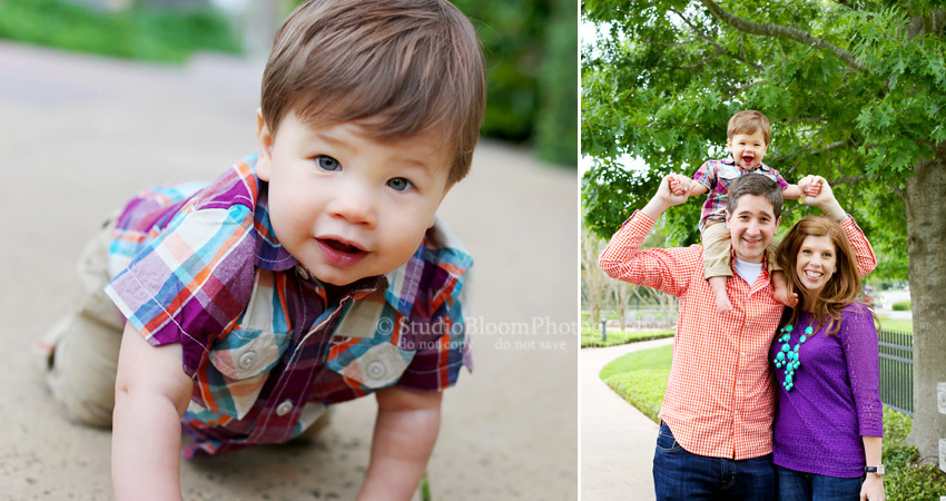 We did some family and one-year photos of Mr. H and he’s a little cutie! He was easy to get to smile and it was so funny to watch him practice his newly acquired walking skills. In every walking picture he has one arm straight up for balance and has so much concentration going on. He is definitely all boy and was busy, busy, busy and tried desperately to get into the different water areas there.